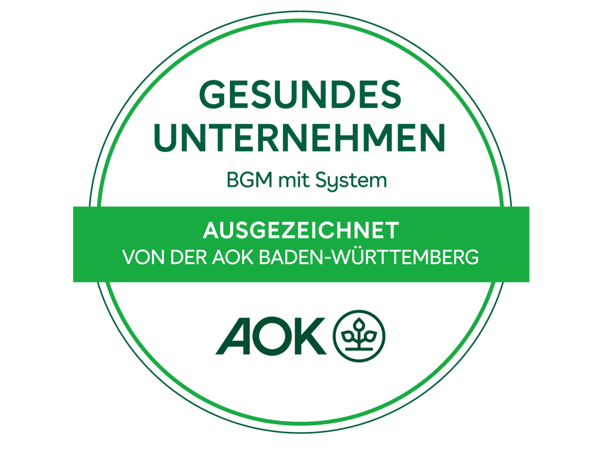 Wir sind stolz darauf, ein gesundes Unternehmen zu sein! Das AOK-Audit für betriebliche Gesundheit hat uns dabei unterstützt, nachhaltige Strukturen für das Betriebliche Gesundheitsmanagement (BGM) zu schaffen. Unsere Mitarbeitenden profitieren von einem gesunden Arbeitsplatz, der ihre Gesundheit und Wohlbefinden fördert.